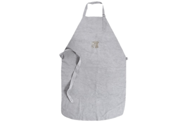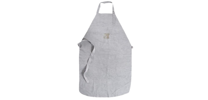 Avental de segurança confeccionado em raspa, tiras de elástico nas costas, tiras na cintura afixadas por costuras reforçadas, raspa para ajustes, costurado em linha de algodão. Medidas: 1,20 X 0,60