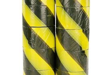 Fita de sinalização e segurança produzida em filme de polieleno de baixa densidade sem adesivo, impresso em duas cores, com espessura de 30 micras com espessura de 50 e 80 micras (preto e amarelo) e colocada num tubete de papelão com largura de 70 mm.