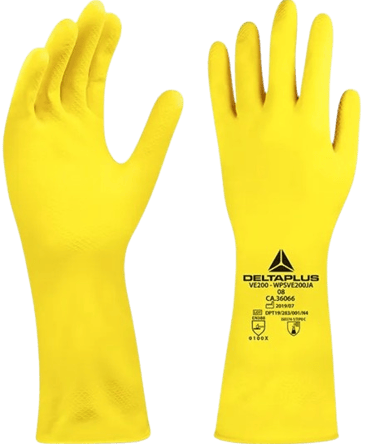 Desenvolvida com borracha natural de alta qualidade, a luva de proteção VE200 da DELTA PLUS oferece boa resistência química e conforto. O acabamento interno flocado facilita a sua colocação e remoção. O acabamento do punho em virola oferece mais resistência na colocação evitando o seu rasgamento